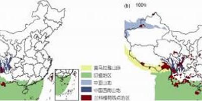 基于筛除算法确立的中国野生兰科植物分布的热点地区与全球生物多样性热点地区的空...