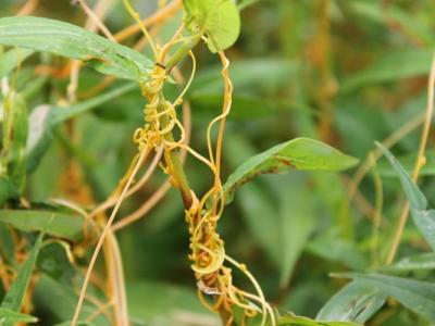菟丝子像吸血鬼般,缠住寄主植物并吸取养分。 (蜘蛛网报道)美国维珍尼亚理工大...