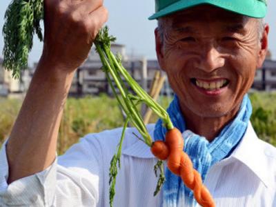 日本奈良县斑鸠町的一位农民收获形如麻花状的胡萝卜 (蜘蛛网报道)据中新网:日...