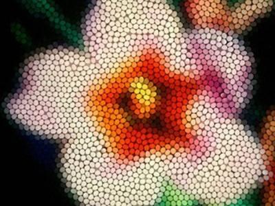 此图显示一朵人眼视为黄色的花在蜜蜂眼中的颜色 澳大利亚的科学家通过研究发现,...