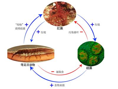 海洋中红藻与等足目甲壳动物和硅藻形成的双重互利关系图(蜘蛛网eeook.com报道)据...