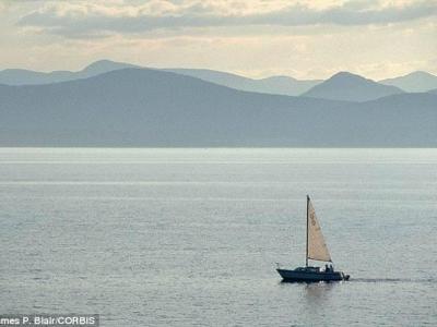 隐生动物学家在美国佛蒙特州尚普兰湖通过