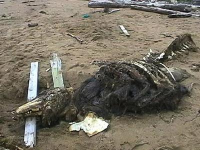 俄罗斯士兵8年前在萨哈林岛海滩上发现的海怪尸体科学家检测后认为是大白鲸骨骼 ...