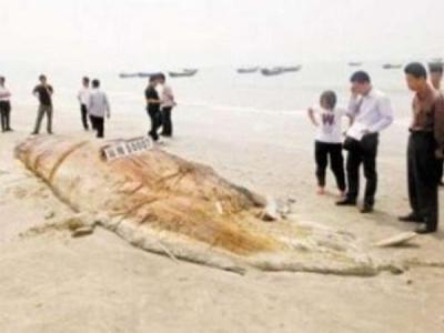广东海滩发现巨型神秘“海怪”尸体 体长
