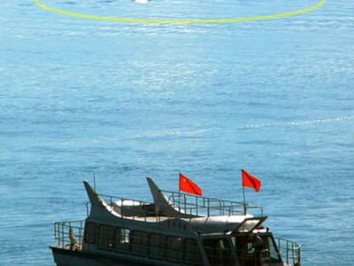 一个庞大的东西在水中游动,长约10米左右(图中黄圈标示) 2007年6月17日早晨...