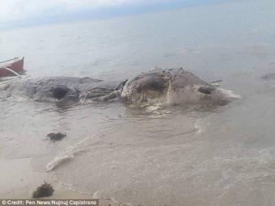 菲律宾雷伊泰岛海滩惊现疑似巨型海怪尸体