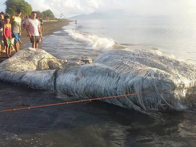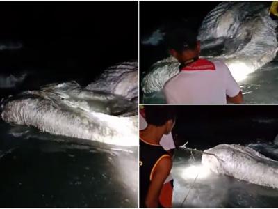 菲律宾雷伊泰岛海滩惊现疑似巨型海怪尸体,当地政府...