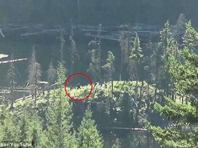 图中红圈中的神秘生物可能是大脚野人 一对徒步旅行夫妻在加拿大森林中拍摄到大...