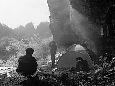 黎国华和队友在山里安营扎寨 1996年冬,黎国华与日本富士电视台企划制作部部长...
