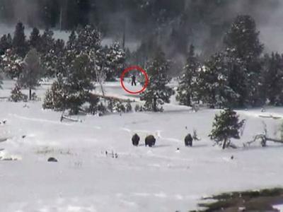 拍摄到4只“大脚怪”(Big Foot)在美国黄石国家公园中散步 不明生物的外型酷似...