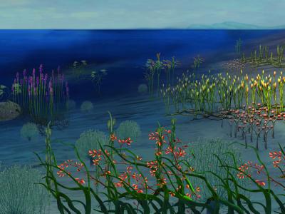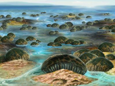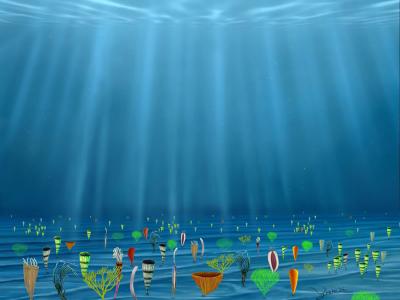 安徽休宁蓝田生物群生态景观图,以近两年埃迪卡拉纪蓝田生物群取得的重大进展为依...