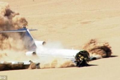 波音727客机在地面控制人员操纵下接近坠毁,图中可见头等舱机身处断裂 本架波...