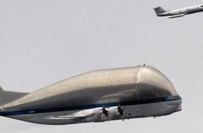 美国宇航局的“超级虹鳉”货运飞机,正在运送航天飞机训练机的机组人员舱 “超...