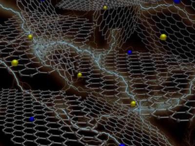 图形演示石墨单原子层的独特能力:一单层的石墨能透过与离子在电化学电容器里的相...