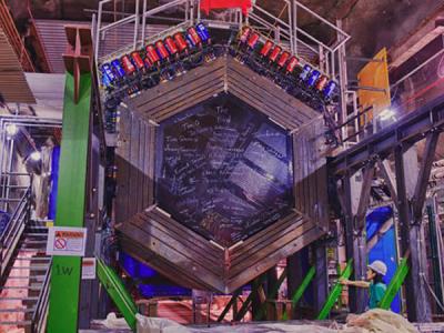 芝加哥费米实验室的粒子加速器。在这个实验室,科学家将信息编码成中微子束,而后...