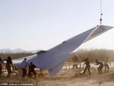 巨型纸飞机即将脱离地面,上演处女航 在达到4000英尺(约合1219米)的高度后,纸...