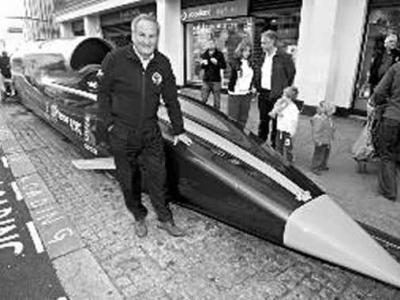 英国工程师研制出一辆时速1600公里的超音速汽车 17日,英国工程师展示研制出的一...