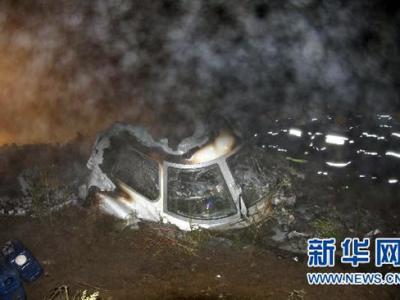 8月25日凌晨,救援人员在失事飞机残骸边开展救援工作。 8月...