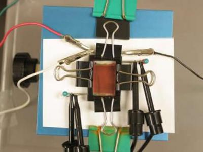 照片中显示了一个垂直堆叠多色电润湿显示器件的原型。由大小为200 × 600和300 ×...