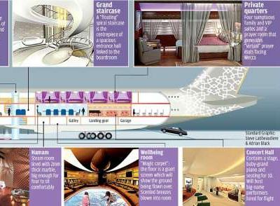 豪华的私人飞机内部示意图 资料图片:世界最大客机空客A380,其机身宽大,劳斯...