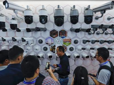 报道指中国已应用情绪辨识技术。图为中国国际社会公共安全博览会中,参观者正观看展...