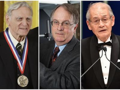 (左起)古迪纳夫、惠廷厄姆及吉野彰致力研究锂离子电池。发展锂离子电池 英美日三...