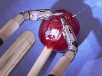 美国公司研发的达芬奇手术机械臂可为葡萄“缝针”视频:美国公...