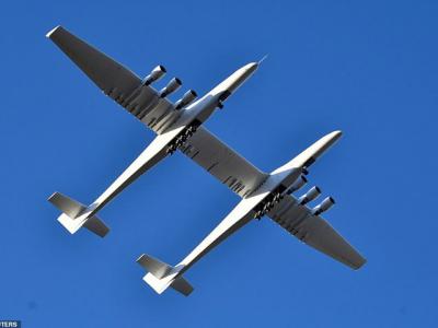 世界最大飞机“平流层发射运载者”(Stratolaunch carrier)在...