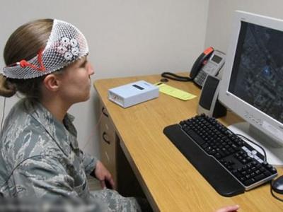 美军资助的专家正研发tDCS装置。图为过往美国空军研...
