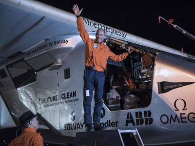 皮卡尔步出机舱,向支持者挥手致谢。 大批支持者到场迎接太阳脉动二号。 (蜘...