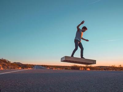 有公司研发出真正浮得起的滑板 滑板以喷气风扇产生推力。图为开发概念图。...