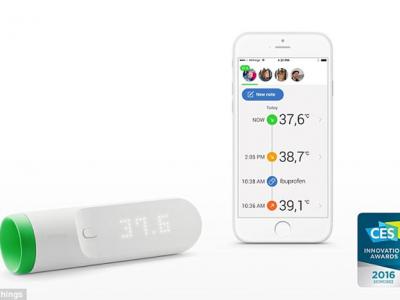 美国推出能WiFi上网并连结手机的智能体温计Thermo 两秒测出小孩体温 将体温计...