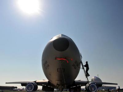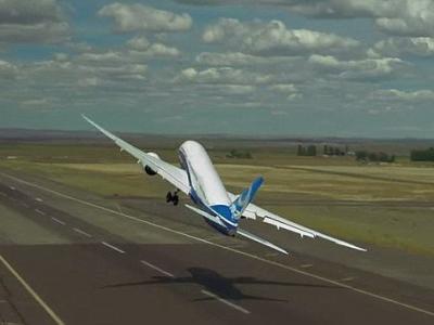 英国范保罗航展上美国波音787-9型客机模仿战斗机进行特技表演 (蜘蛛网...