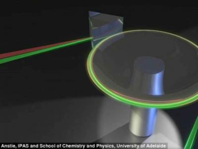 这项设备被称作“纳米-开尔文温度计”,这项技术中包含让一束红光和一束绿光沿一...