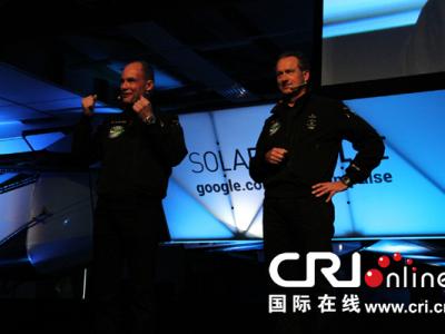 瑞士探险家皮卡尔(左)和博尔施贝格在“太阳驱动2”号飞机发布仪式上 (蜘蛛网...