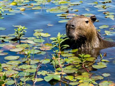 阿根廷东北部伊比利亚湿地的一只水豚。Credit: Kylie Nicholson/Shutterstock(蜘蛛...