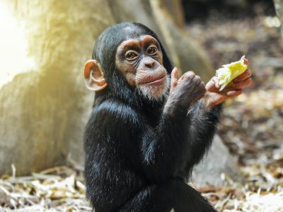 一只小黑猩猩喜欢他的食物。资料来源:Michaela Pilch/Shutterstock(蜘蛛网eeook....