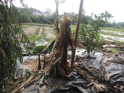 台湾嘉义香蕉树遭大型野狗破坏 (蜘蛛网报道)台湾嘉义县中埔乡一处香蕉园有数株...