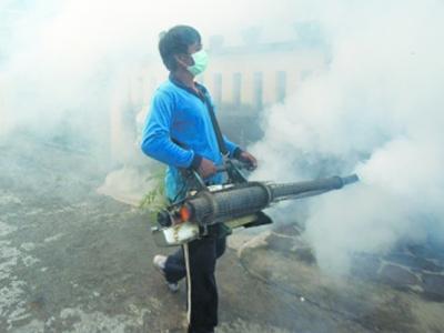 印度尼西亚巴厘岛,一位工人进行灭蚊工作,以防其引起的登革热。 (蜘蛛网报道)...