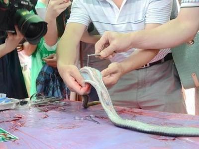 湖南“蛇王”解剖野生蛇检查出活体寄生虫