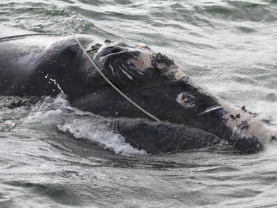 生物家团队协助解开北大西洋露脊鲸身上的绳索。图片来源:NOAA News Archive 12311...
