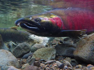 银鲑在俄勒冈州西北部的鲑鱼河产卵。图片来源:奥勒冈与华盛顿州土地管理局(CC BY...