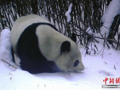 四川越西县申果庄省级大熊猫自然保护区拍到野生大熊猫 红外线相机拍摄到的...