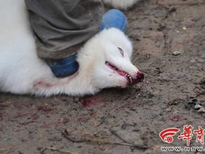 西安市临潼区南王村蓝狐养殖园区血腥宰杀