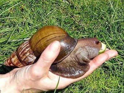 非洲大蜗牛入侵广西南宁 近日,南宁市郊出现非洲大蜗牛,繁殖力极强。这种被我国...