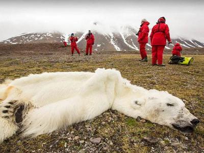 气候变化致北极熊难觅食被饿死 气候变化致北极熊难觅食被饿死 气候变化致北...