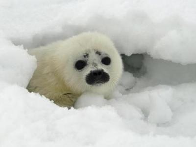 一只环斑海豹从雪洞中探出头来 美国国家海洋和大气局渔业公司(NOAA Fisheries)...