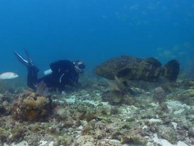 大石斑鱼难逃捕杀厄运 正如圣经中的哥利亚,其巨大的身躯并没有使自己免于瘦小的...
