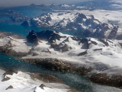 格陵兰岛东海岸一景。在那儿,冰盖与大海相交。 美国国家航空航天局提供的这幅...