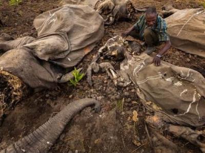 被非法盗猎者杀害的非洲象遗骸 据美国国家地理网站报道,在针对非洲大象的非法捕...